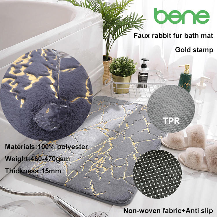 Med hensyn til æstetik kan måtten prale af et solidt farvemønster med en markant faux kaninfelstekstur kombineret med elegante guldfolie -accenter og tilføje et strejf af luksus til ethvert rum. Dens specielle funktioner, inklusive skridsikreegenskaber, blødhed, vaskbarhed og vandabsorption, gør det både til et praktisk og stilfuldt valg til at forbedre dit rum.
